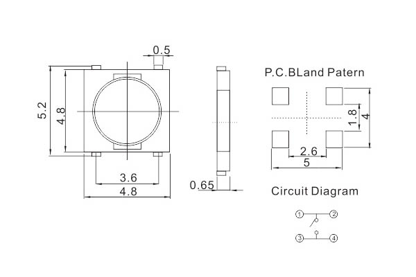 Location  Home -> Products  ->  Switch Series  ->  Tact Switch Series  ->  KFC-A04-04