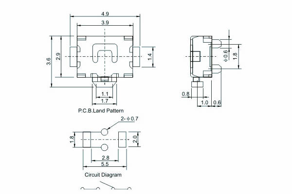 Location  Home -> Products  ->  Switch Series  ->  Tact Switch Series  ->  KFC-A07-04A