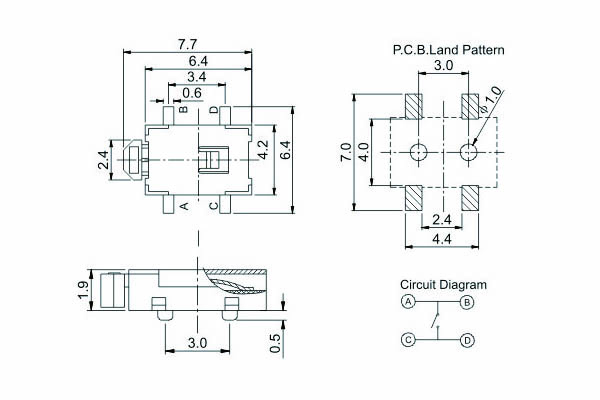 Location  Home -> Products  ->  Switch Series  ->  Tact Switch Series  ->  KFC-A07-05