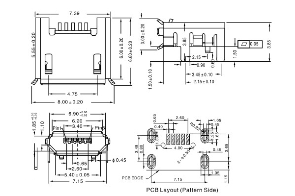 USB 2.0 connector, Micro type, 5-pin, full plug