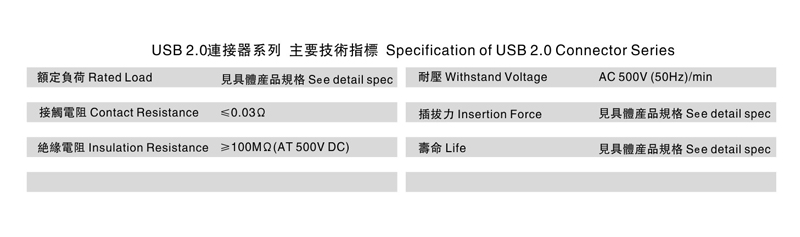 USB 2.0 connector, Micro type, 5-pin, recessed board-mounted, 0.7-inch, four-pronged fully inserted